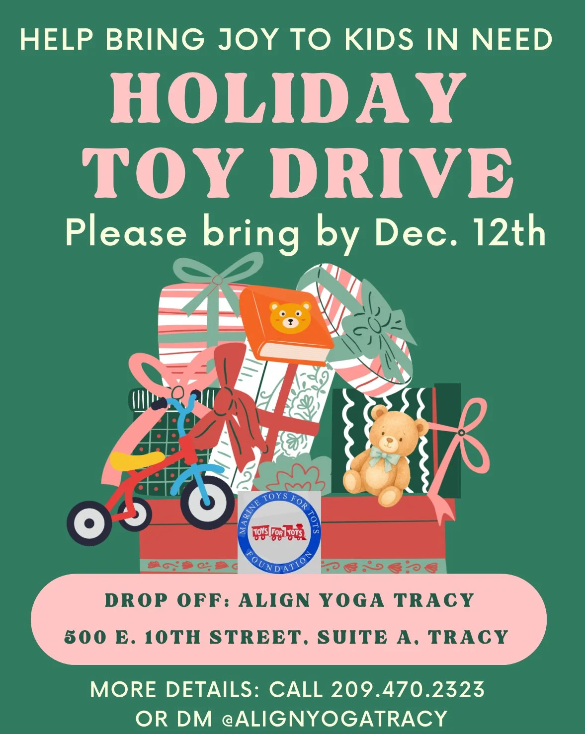 Toys for Tots Drive: We are so grateful to share that our 2nd annual Toy Drive is officially underway! We are collecting unopened toys, books, stuffed animals, dolls for all ages now through DEC. 12th. Every little bit helps make Christmas brighter for a child in need.
